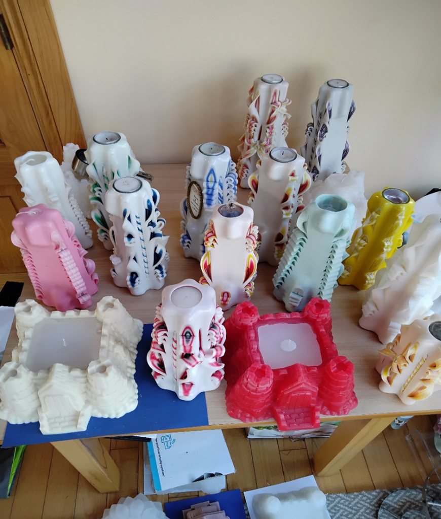 - 2 x 4.5kg of clear candle lacquer @ €25 each