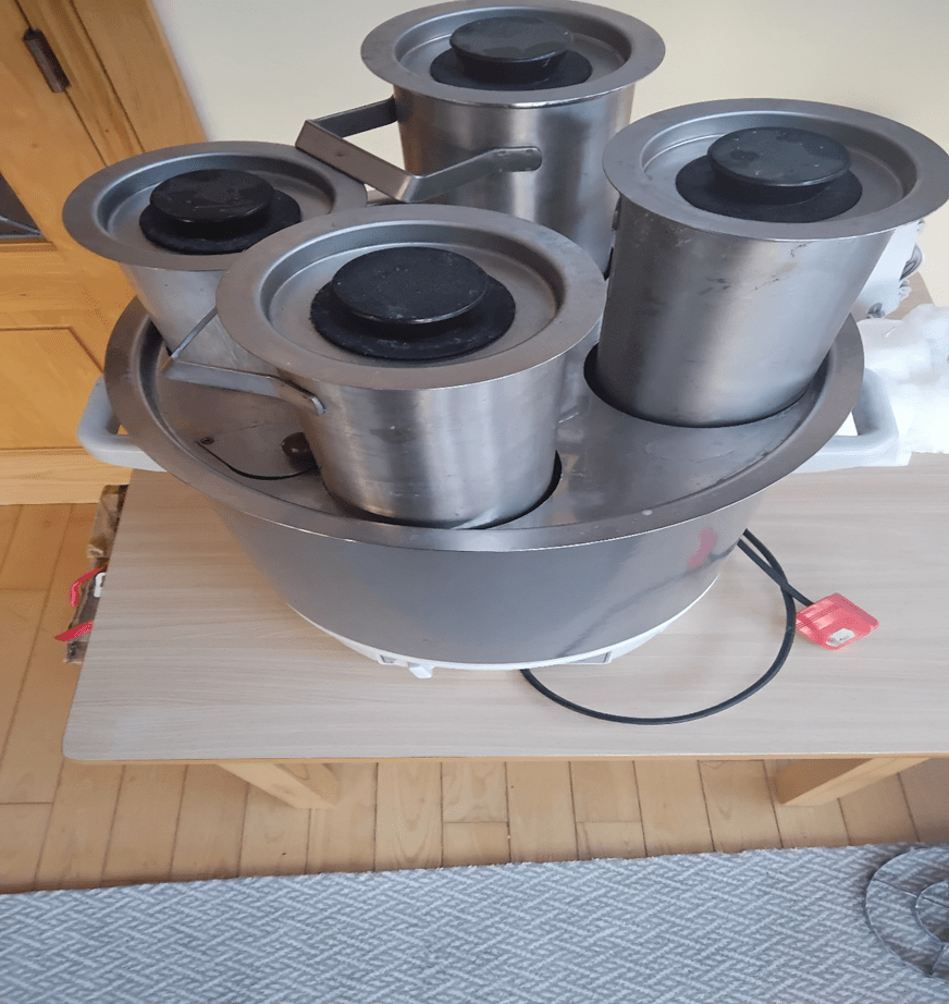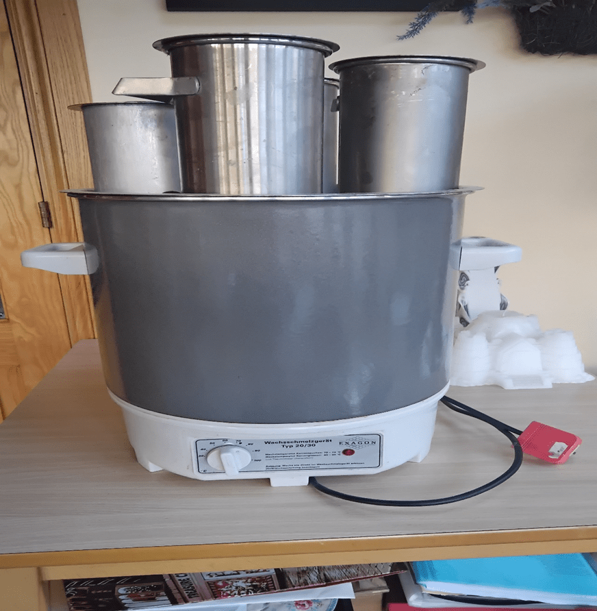 Wax melter type 40 complete with 1 – 4- hole lids and melting pots.